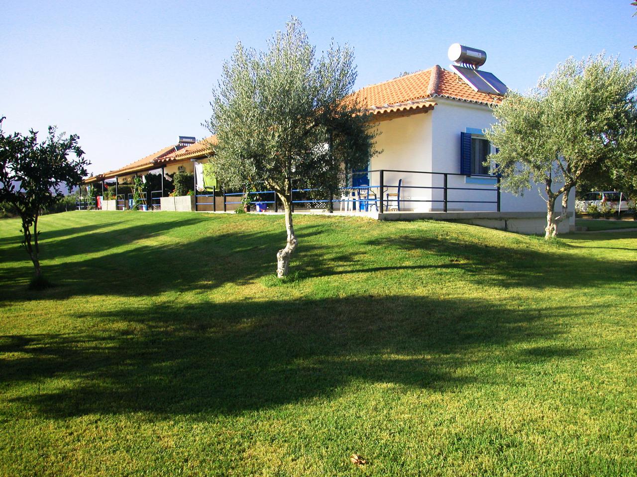 Ειμαστε μεσα σε ενα εξαιρετικα ησυχο και καταπρασινο περιβαλλον με μεγαλη βεραντα, πληρη κουζινα, τηλεοραση, κλιματισμο,