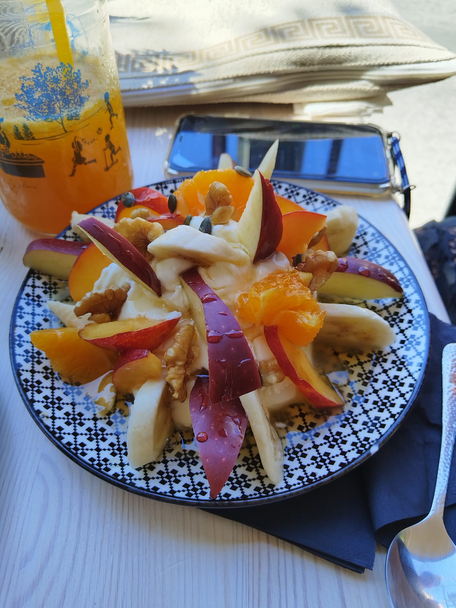 Εδώ θα βρείτε καφέδες υψηλής ποιότητας (espresso, cappuccino, freddo, ελληνικό), σοκολάτες, milkshakes και φυσικούς χυμούς, ενώ το πλούσιο μενού πρωινού περιλαμβάνει: τοστ, club sandwich, σάντουιτς με σολομό, ομελέτες, γιαούρτι με μέλι και ξηρούς καρπούς, μπάρες δημητριακών, κρέπες (γλυκές & αλμυρές), καθώς και λουκουμάδες, που σερβίρονται με μέλι, διάφορες πραλίνες και απολαυστικά toppings.