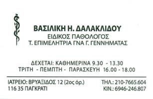 Δέχεται καθημερινά 09:30 - 13:30 και Τρίτη, Πέμπτη, Παρασκευή 16:00 -18:00 κατόπιν ραντεβού. Τ. Επιμελήτρια ΓΝΑ Γ. Γεννηματάς.